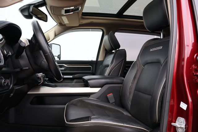 Comfort and convenience are also prioritized, with features like heated and ventilated front seats, a heated steering wheel, and a premium leather-trimmed interior. The Laramie Level 1 Equipment Group adds even more convenience with blind spot and cross-path detection, rain-sensing windshield wipers, and front and rear park assist.