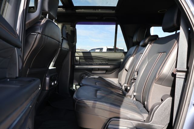 The interior of the Expedition Max Platinum is a sanctuary of luxury and convenience. Sink into the heated and ventilated leather front captain's chairs and enjoy the premium Bang & Olufsen sound system, which fills the cabin with exceptional audio clarity. The SYNC 4 infotainment system with enhanced voice recognition keeps you connected and in control, while the power liftgate and 8-passenger seating ensure maximum versatility.