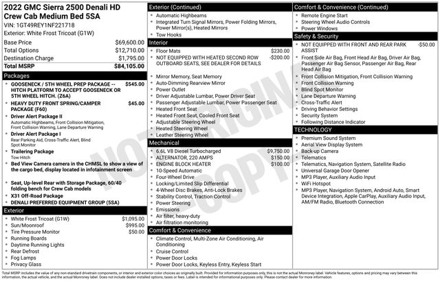 Whether you're a seasoned contractor, an avid outdoor enthusiast, or simply seeking a capable and refined heavy-duty truck, the 2022 GMC Sierra 2500HD Denali is the perfect choice. Experience the uncompromising performance, unparalleled utility, and unmatched comfort that this exceptional vehicle has to offer. Visit our showroom today to take this remarkable truck for a test drive and discover why it's the ultimate heavy-duty companion.